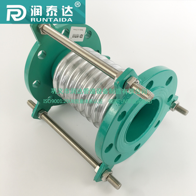 波紋膨脹節是用金屬波紋管制成的一種膨脹節。它能沿管道軸線方向伸縮,也允許少量彎曲。常見的軸向式波紋管膨脹節,用在管道上進行軸向長度補償。為了防止超過允許的補償量,在波紋管兩端設置有保護拉桿或保護環,在與它連接的兩端管道上設置導向支架。另外還有轉角式和橫向式膨脹節,可用來補償管道的轉角變形和橫向變形。這類膨脹節的優點是節省空間,節約材料,便于標準化和批量生產,缺點是壽命較短。波紋管膨脹節一般用于溫度和壓力不很高、長度較短的管道上。隨著波紋管生產技術水平的提高,這類膨脹節的應用范圍正在擴大。目前,波紋管膨脹節可用在*高壓力6.0兆帕的管系中。